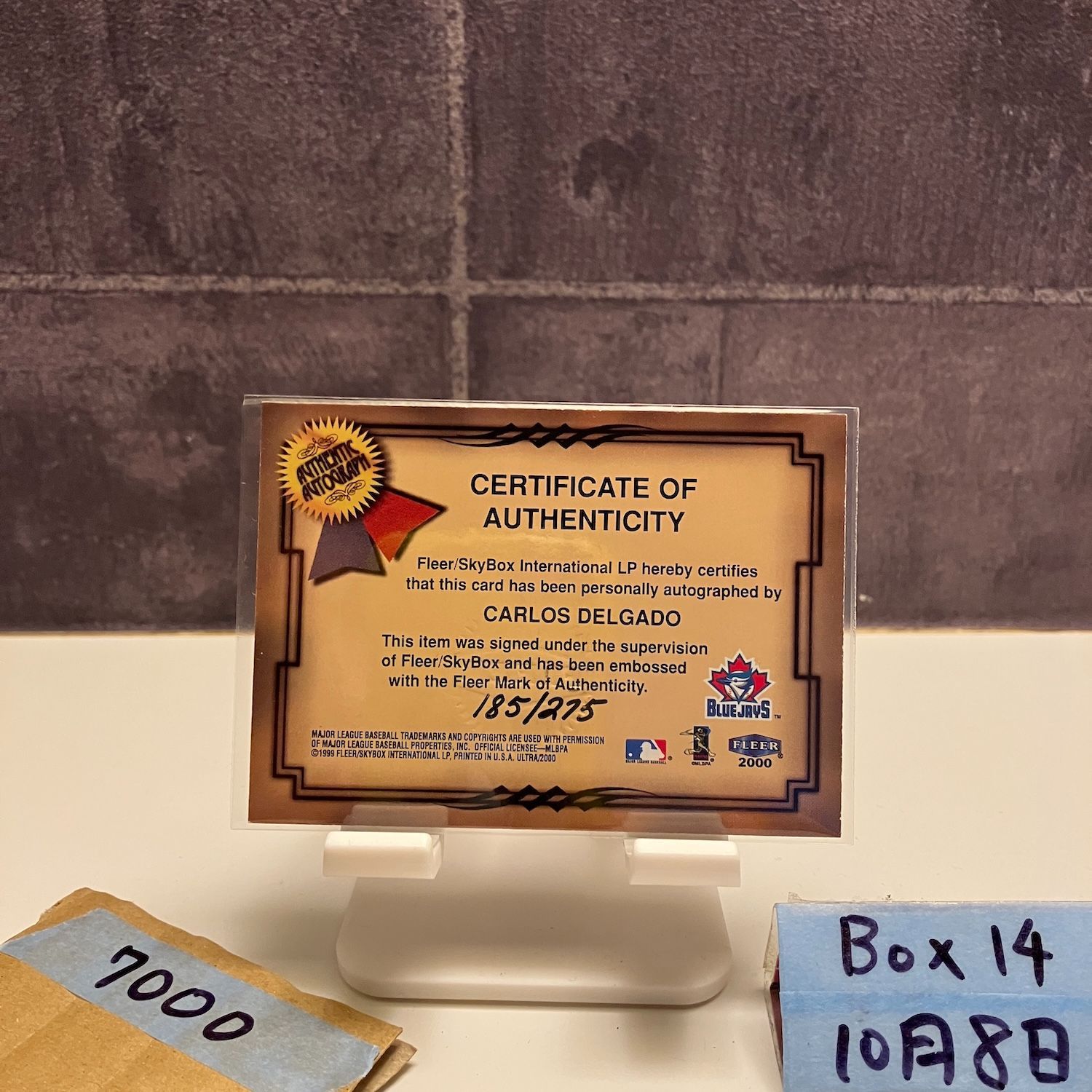 1999- 2000 FLEER SkyBox Ultra Carlos Delgado 185/275 直筆サインカード TORONTO BLUE JAYS Fresh Ink カード