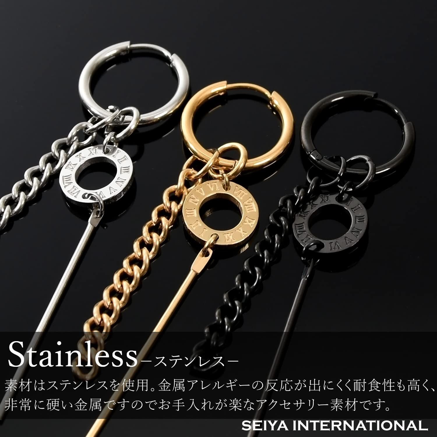【在庫処分】リング フープ ローマ数字 チェーンピアス リングピアス フープピアス ステンレス 片耳 メンズ ピアス 18G INTERNATIONAL] [SEIYA