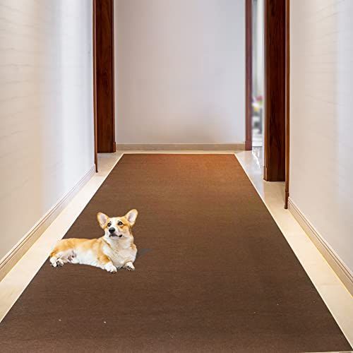 YOXU 廊下マット 廊下敷き 厚さ4mm 滑り止めマット 床保護 キズ防止 カーペット 騒音対策 スレない 素足 水で洗える タイルマット (ブラウン 68*300cm)