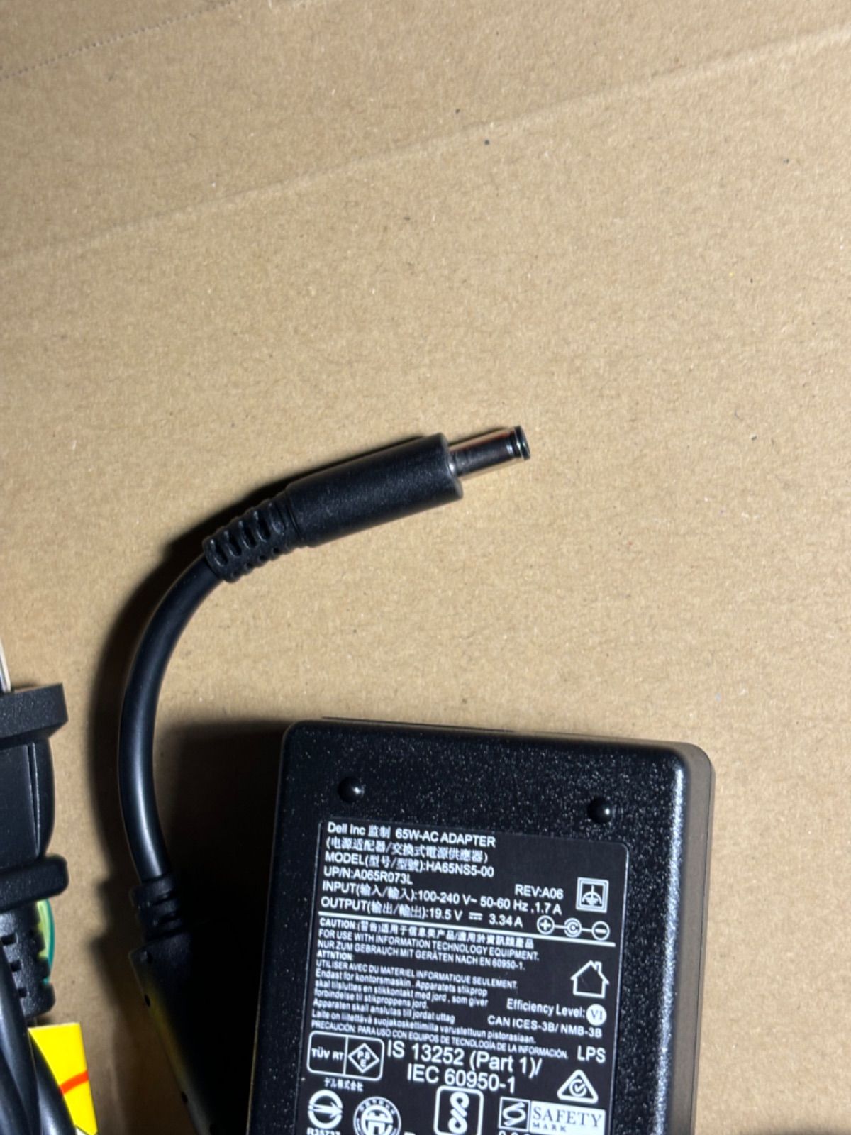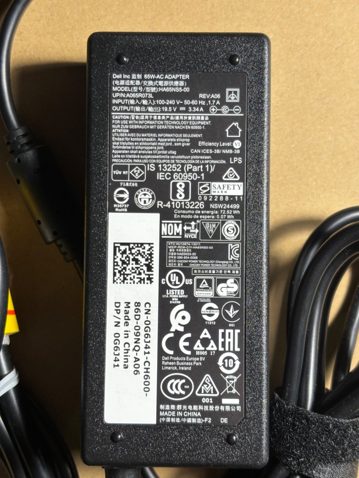 【中古】DELL ACアダプター HA65NS5-00/LA65NS2-01 丸ピン 長方形 65W DCサイズ:4.5mm