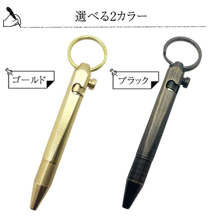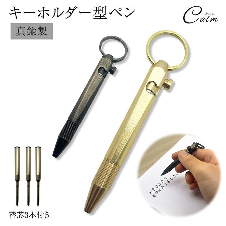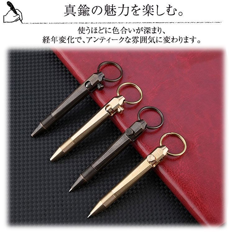 携帯ペン キーホルダー型 替芯付き 真鍮製 携帯 コンパクトサイズ 小型 高級感 おしゃれ アンティーク シンプル