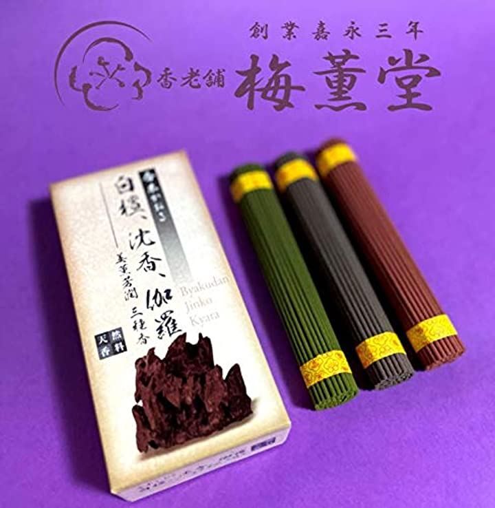 梅薫堂 美薫芳潤 三種香 / 日本製 淡路島 株式会社 線香 お香 アロマ 実用 仏壇 お盆 彼岸 香り 香木 白檀 沈香 伽羅のかおり びくんほうじゅん 天然香料