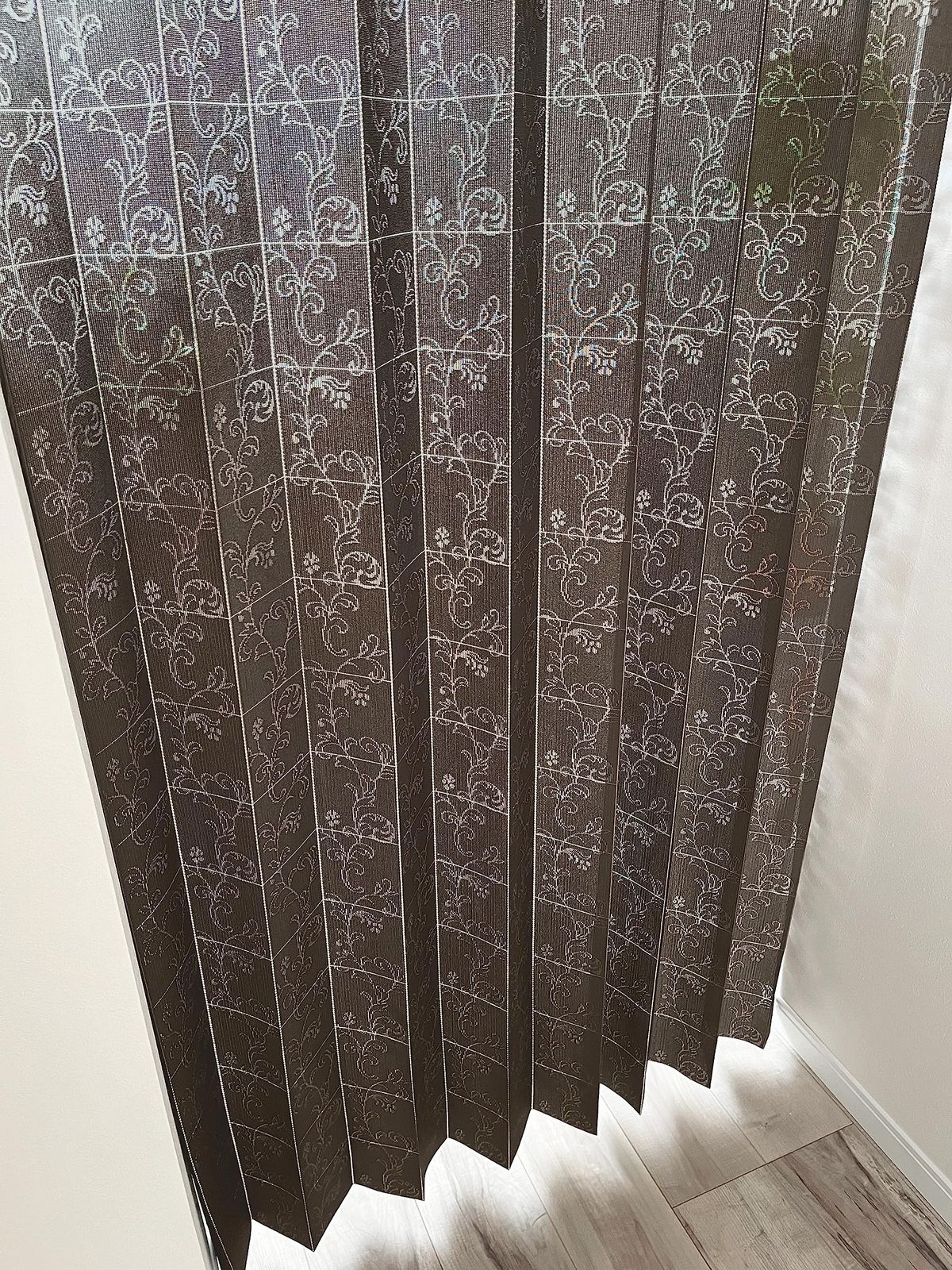 日本製 パタパタ アコーディオンカーテン 帝人フロンティア エコリエ使用 つる草花柄 アラベスク 遮熱 断熱 保温 長さの調整可能 巾150cm×丈200cm ブラウン