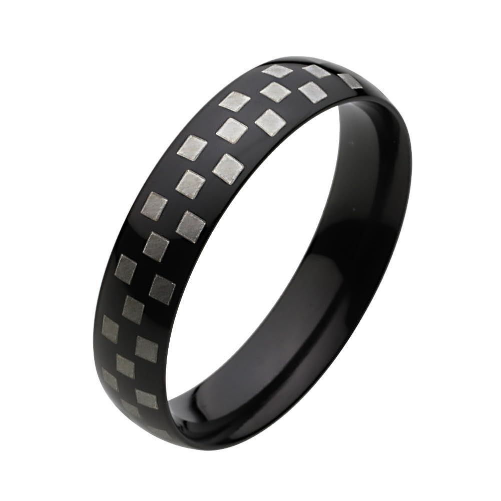 新生活応援SALE21 [フィグマート] 甲丸 ブラック チェッカー リング【ステンレスアクセサリー】 fr6086 21号