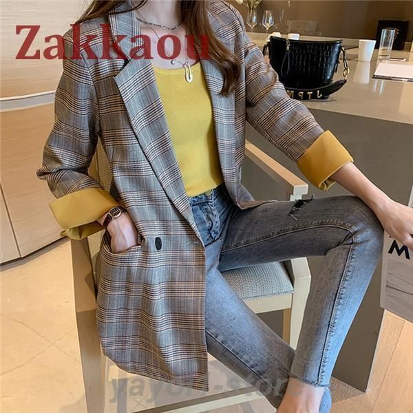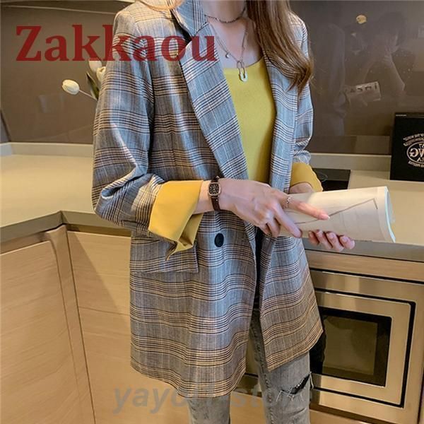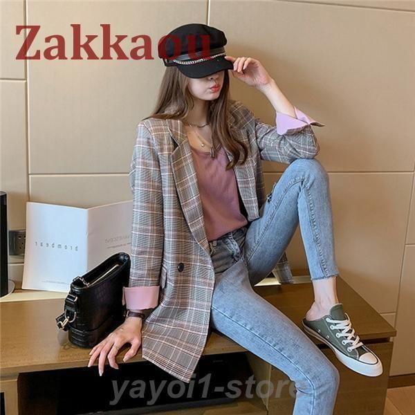 【送料無料】テーラードジャケット レディース ジャケット スーツ ブレザー チェック柄 春 秋 アウター 長袖 上着 オフィス 通勤 カジュア