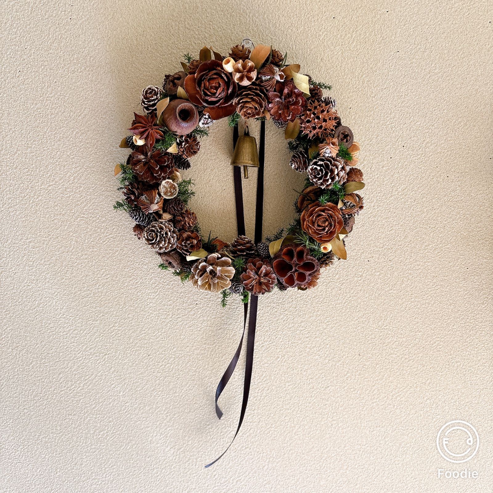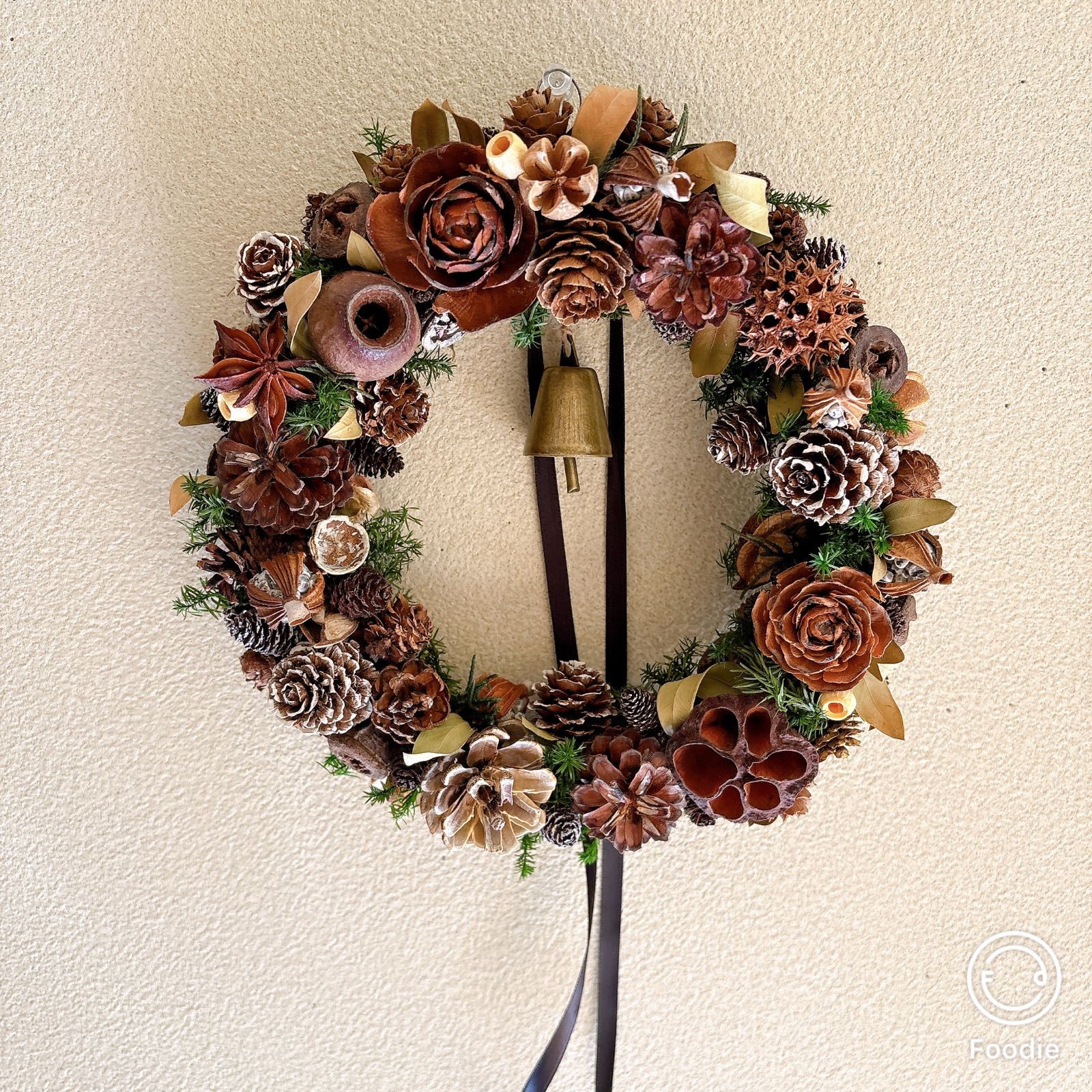 木の実と松ぼっくりのナチュラルリース ドア飾り 壁飾り