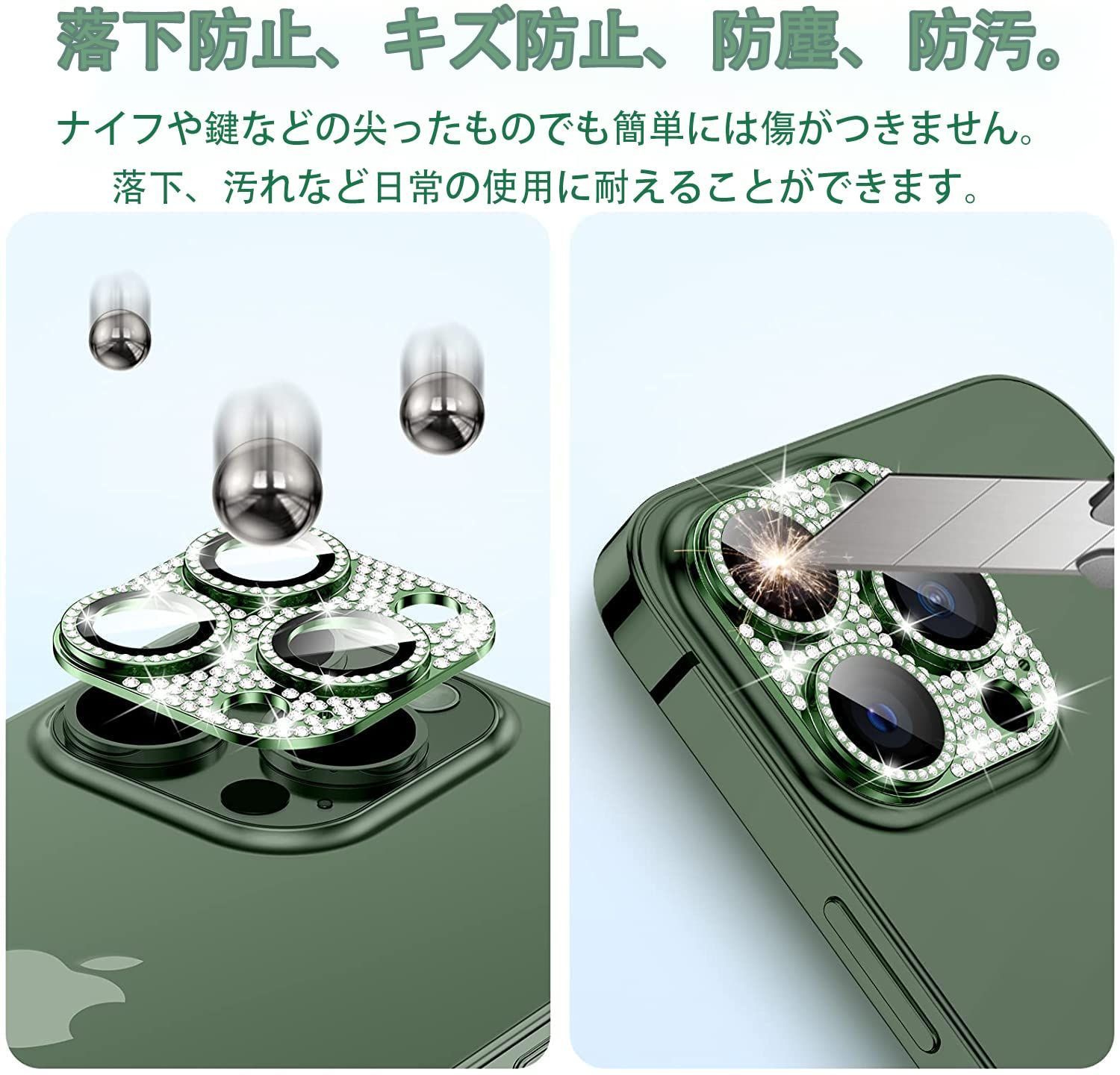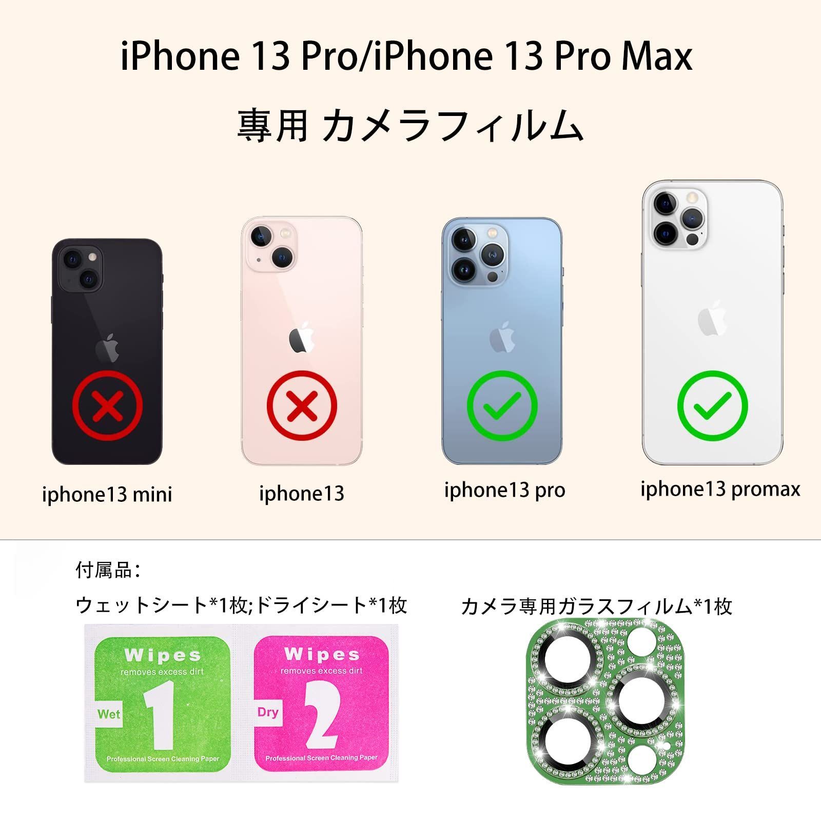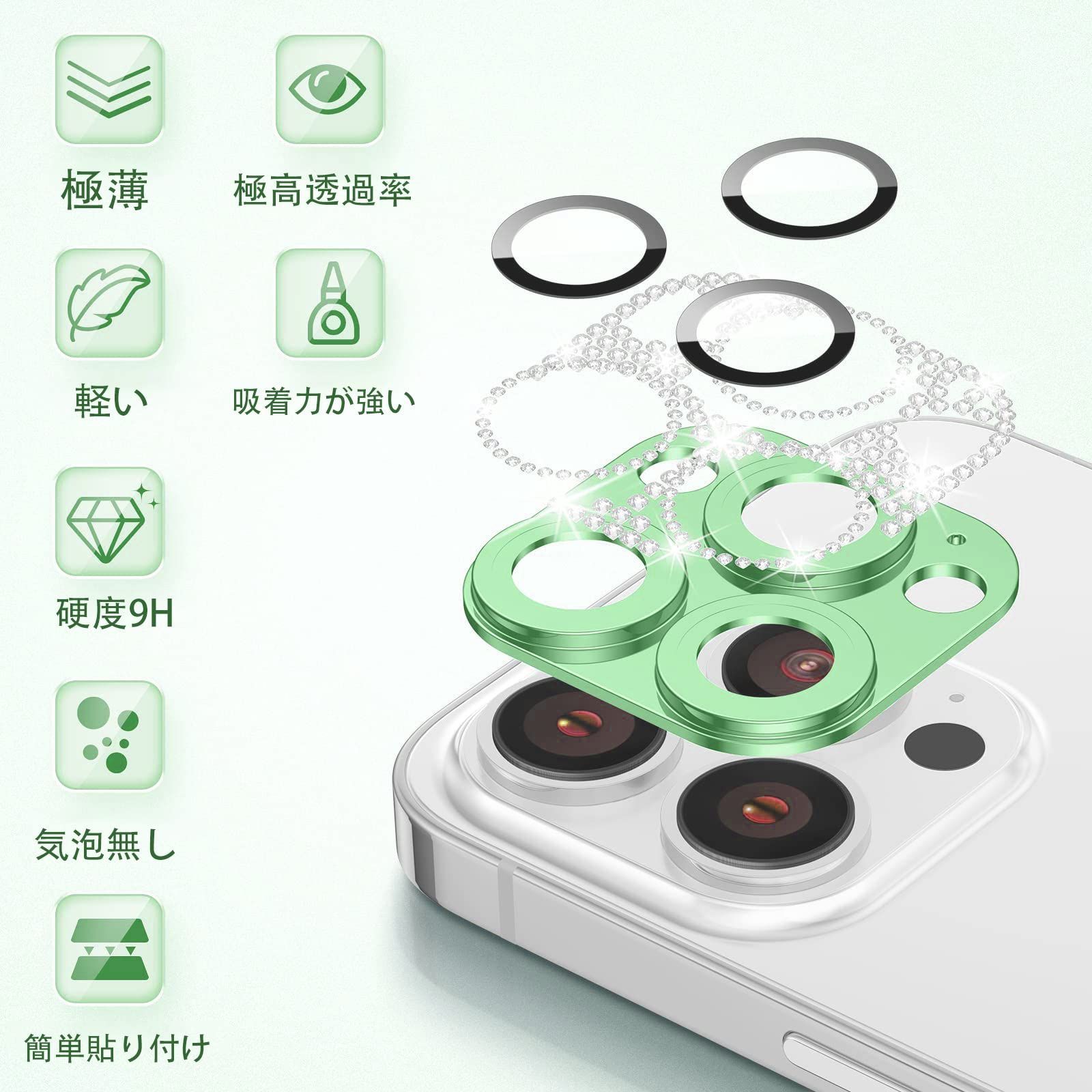 iPhone 13 pro/iPhone 13 pro max カメラフィルム レンズ 保護カバー 【1枚】 【アルミニウム合金+強化ガラス製】 ラインストーン レンズ キラキラ 保護フィルム 可愛い アイフォン13プロ/アイフォン13プロマックス 用 カメラ保護 全面保護 高透過率 防塵 iPhone13pro/iPhone13pro max 対応