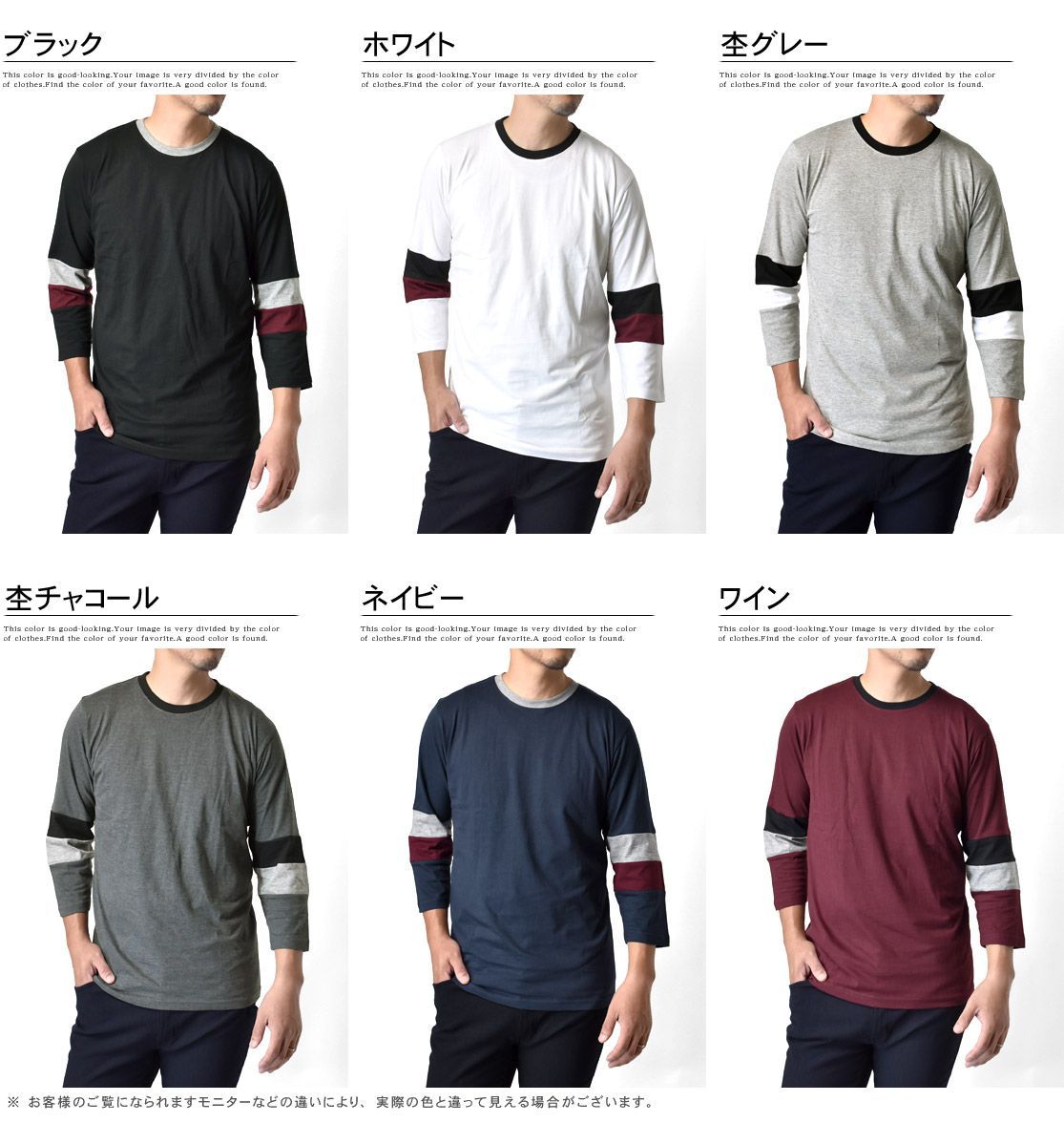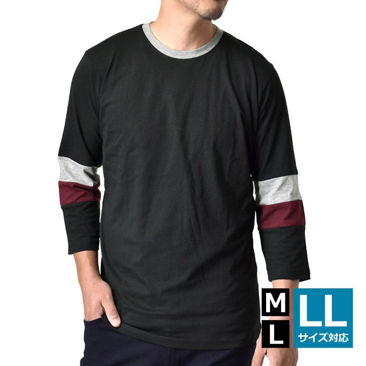 長袖Tシャツ 《ブラック》 新品 未使用 7分袖T メンズ Tシャツ ハンパ袖 切り替え 綿混 リンガー【D4D】【メール便2】