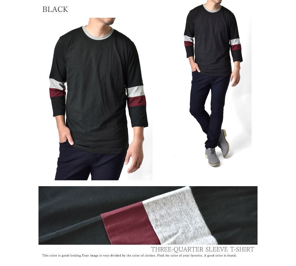 --- カラーブロックの配色がお洒落なARUGE完全オリジナルのメンズ7分袖Tシャツ! ---