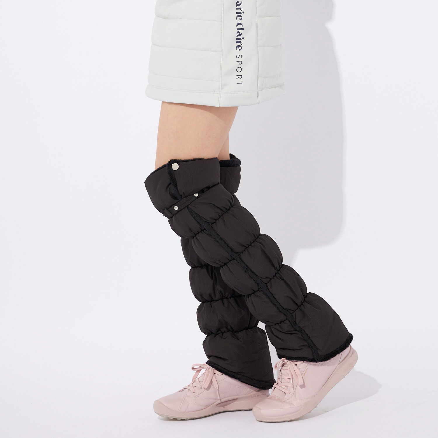 新品未使用! 中綿レッグウォーマー ブラック 黒 レディース ゴルフウェア 裏起毛 保温 暖かい 長さ調節可能 防寒 スポーツ アウトドア marie claire マリクレール フリーサイズ 732924 秋 冬