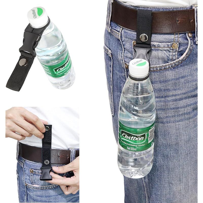 【取り扱い簡単 分離式】リュックサック・デイバグ・バックパックやベルトから取り出すことなくバックルを外してボトルだけ取り出してキャップを開けられる分離式ですので、操作が簡単で水分補給・ハイドレーションが容易で便利です。 飲料ボトルを身に着けて持ち運べるため、バッグやカバンの中のスペース節約もできます。モールシステムに対応したぺットボトルホルダーですのでベルトだけではなく、バッグ、リュックサック、バックパック、ウエストポーチ、BDU, Molleポーチに下げたり、自動車の後部座席に吊るしたフック、などに掛けておくことも出来ます。ホルダーはベルクロ・マジックテープでカバン・ポーチやベルトに簡単装着できる手軽さとワンタッチで直ぐに取り外せる使い勝手の良さが特徴です。シンプルなデザインながら優れた機能性で、旅先や外出をする時、喉が渇いた時お茶や飲料水、スポーツドリンクなどの吸水が便利です!