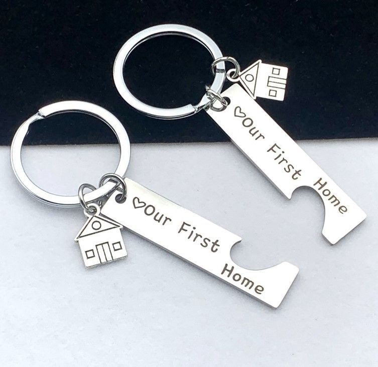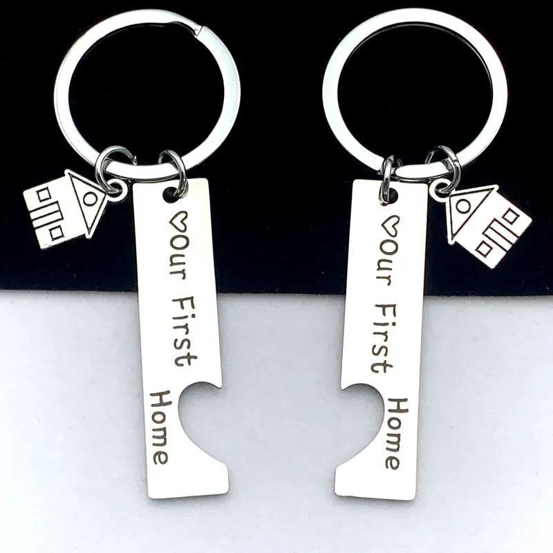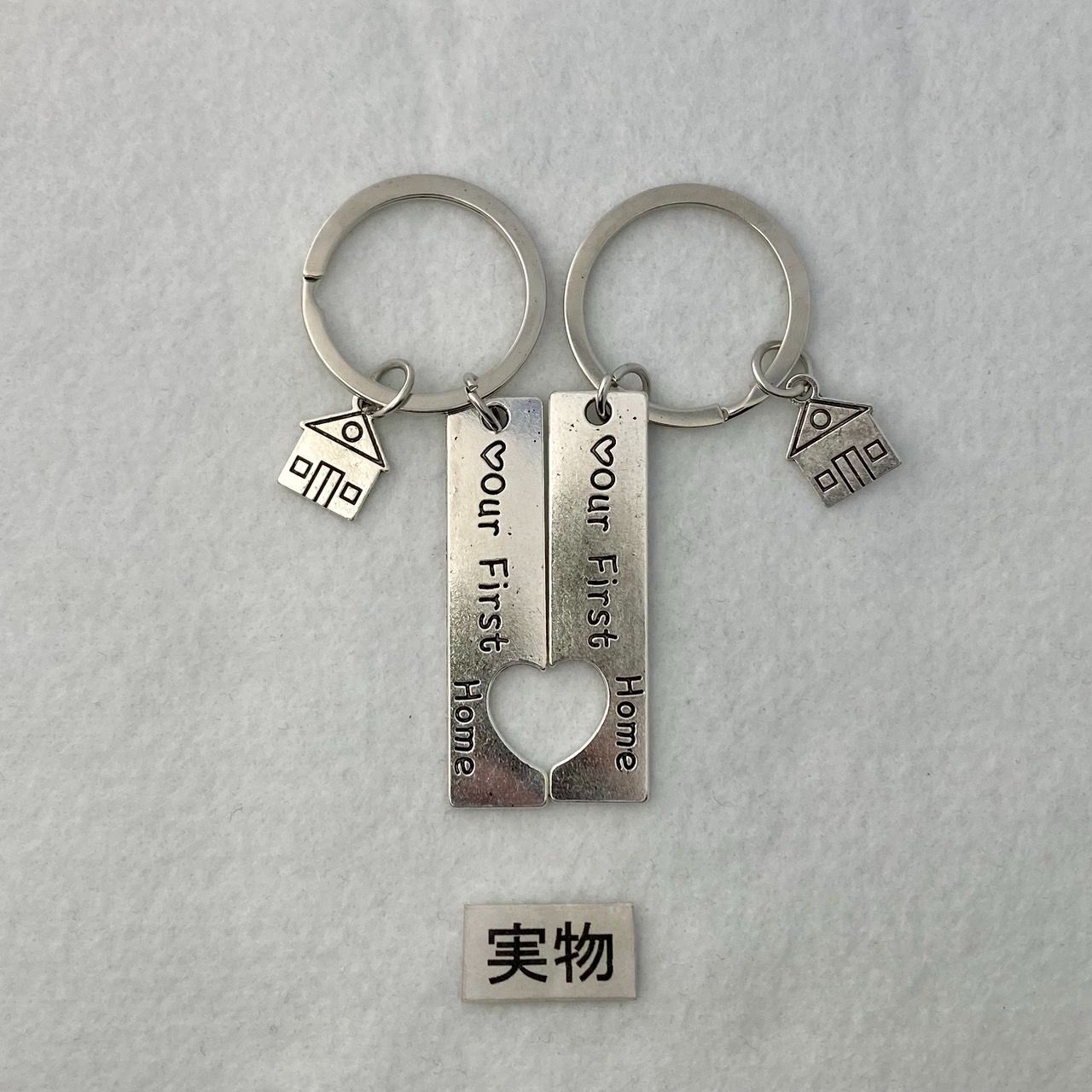 【ペア】ホーム チャーム フォルダー 家 2つセット キーホルダー キーリング 鍵 ハート ハウス カジュアル お揃い ギフト 贈り物 贈りもの 新品