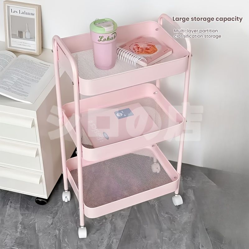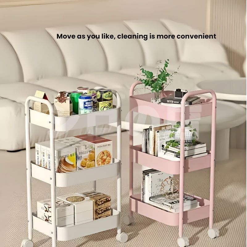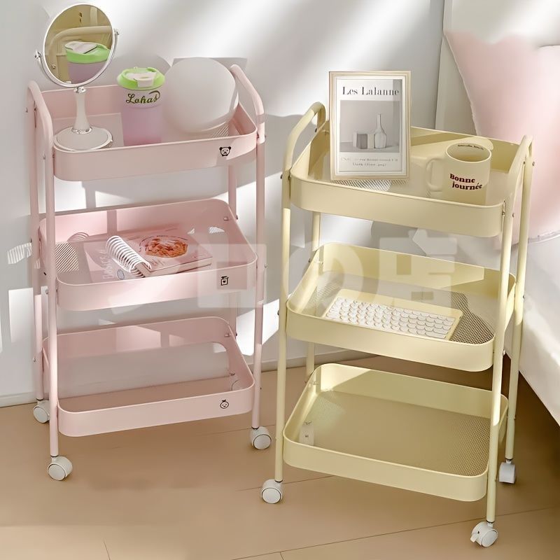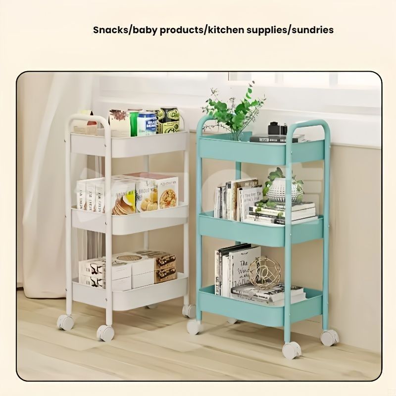 3つの収納棚があり、様々なアイテムを整理整頓できます。キッチンの食器や調味料、寝室の衣類、オフィスの文房具や書類などをスッキリ収納可能です。