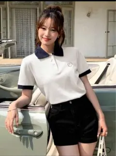 夏服 半袖 ポロシャツ ホワイト/ネイビー