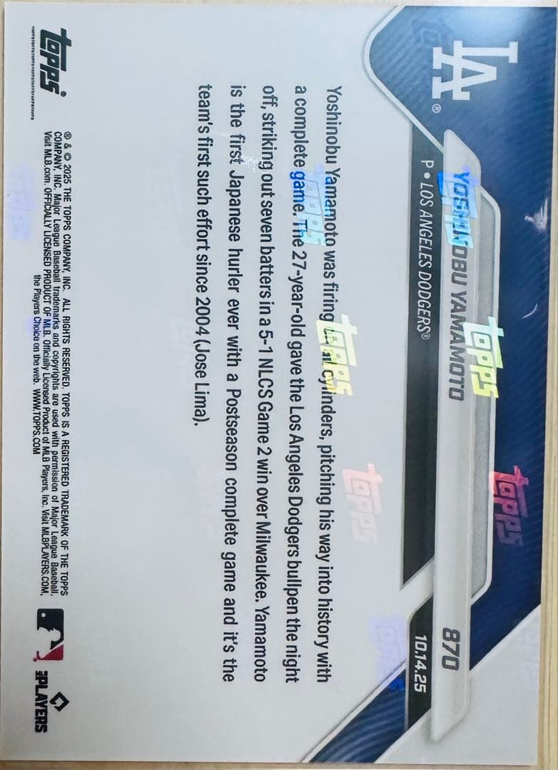 た*か様 山本由伸 Topps now 870 NLCS 初完投