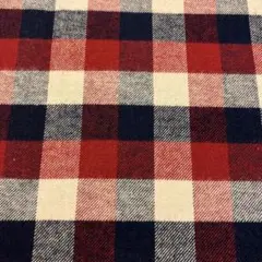 先染め生地(赤×濃紺×ベージュのブロックチェック柄ツイル)
