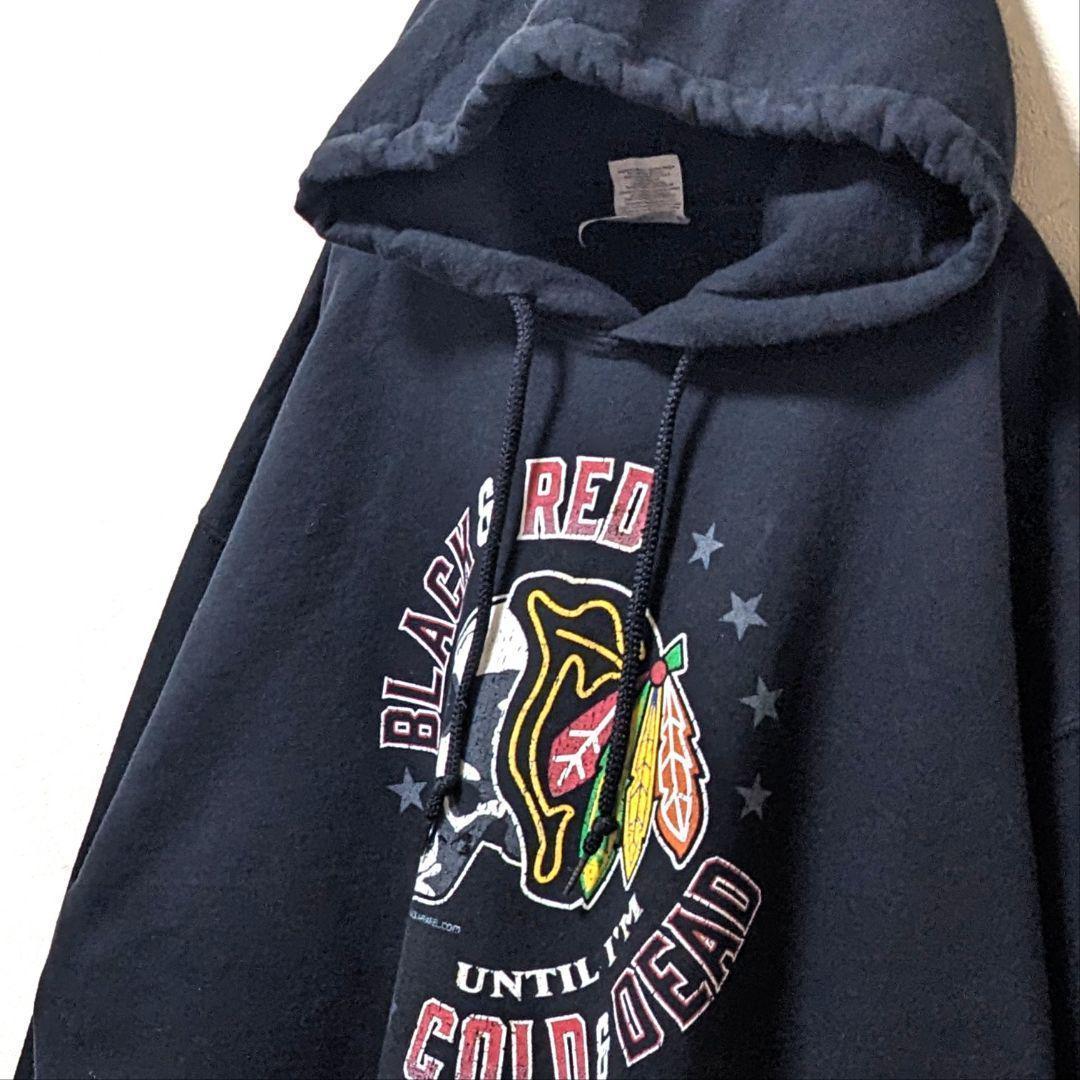ギルダン シカゴインディアンス ロゴ スウェットパーカー ブラック黒 L古着