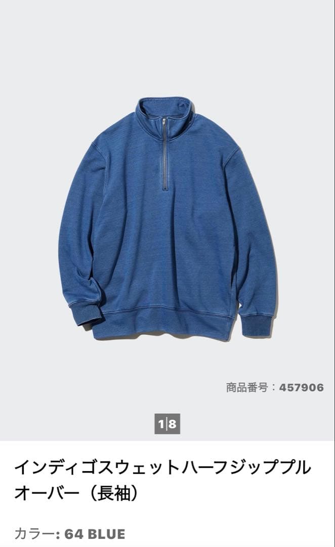 最終値下げ!インディゴスウェット ハーフジッププル オーバー ユニクロ サイズL