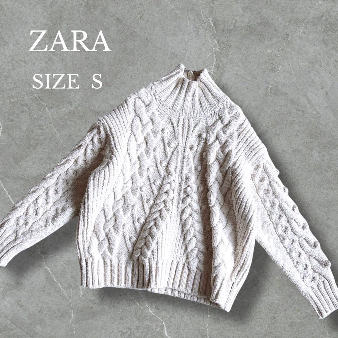 ザラ ケーブルニットセーター アイボリー 防寒 カジュアル ナチュラル系 S