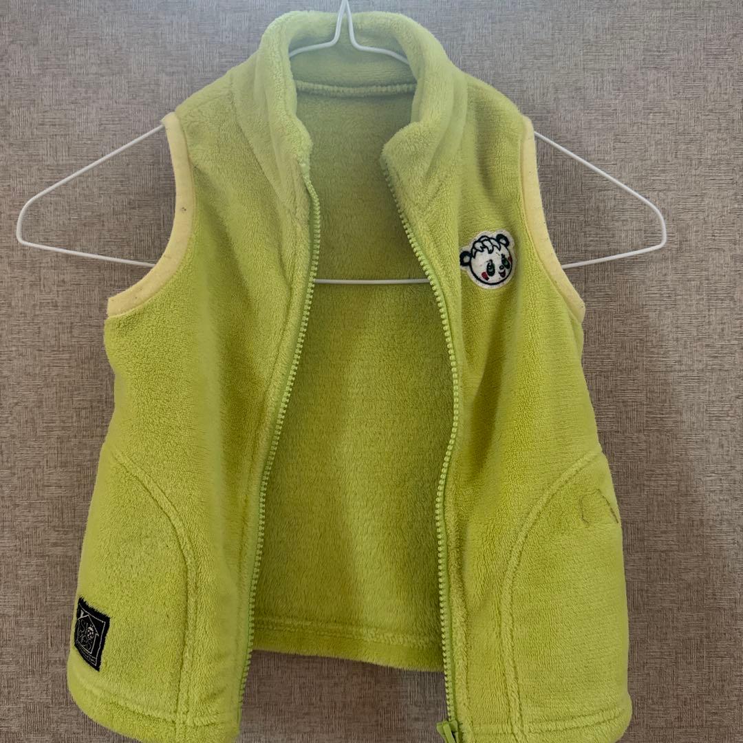 フリースダウンベスト ライムグリーン パンダ刺繍