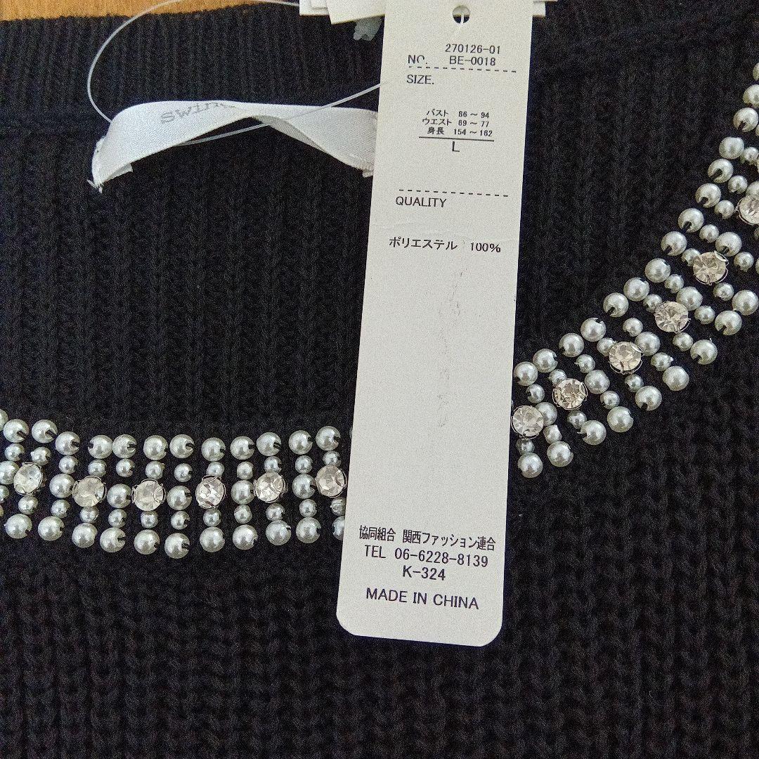 訳あり【未使用タグ付】ベルーナ/RyuRyu ビジュー付きブラックニット