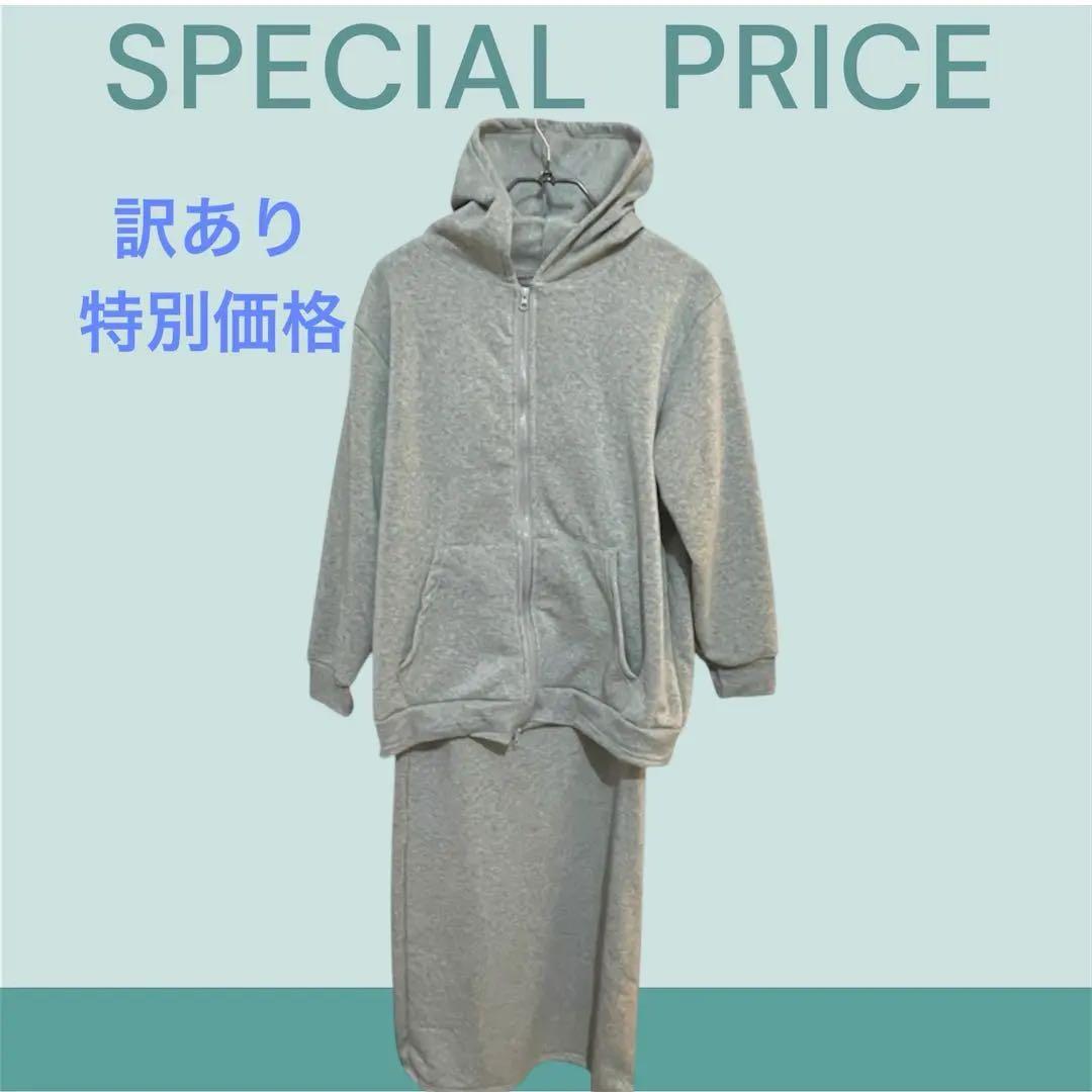 ちょっと訳あり フード付きスウェットパーカー&スカートセットアップ 裏起毛グレー
