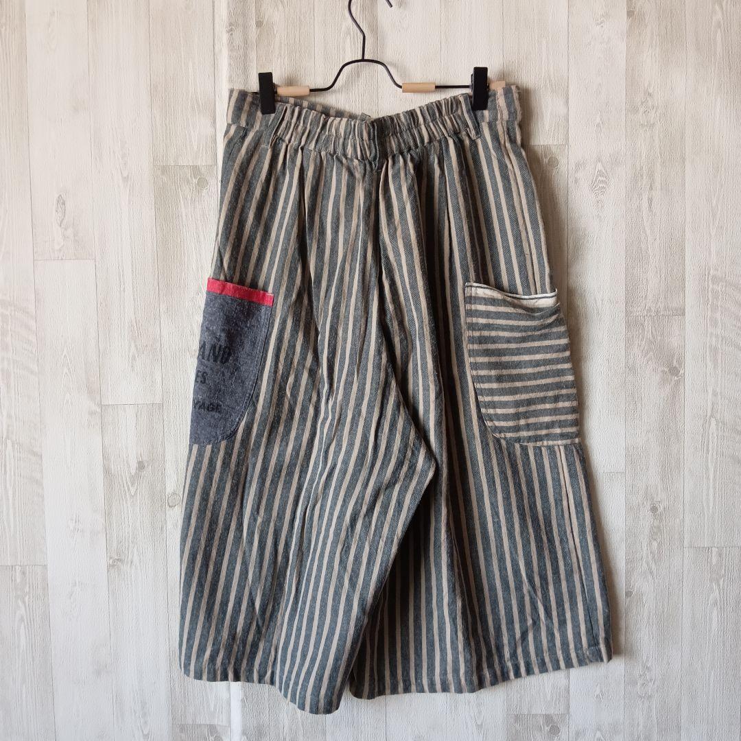 LIME INC ストライプ ガウッチョパンツ リネン カジュアル ライム