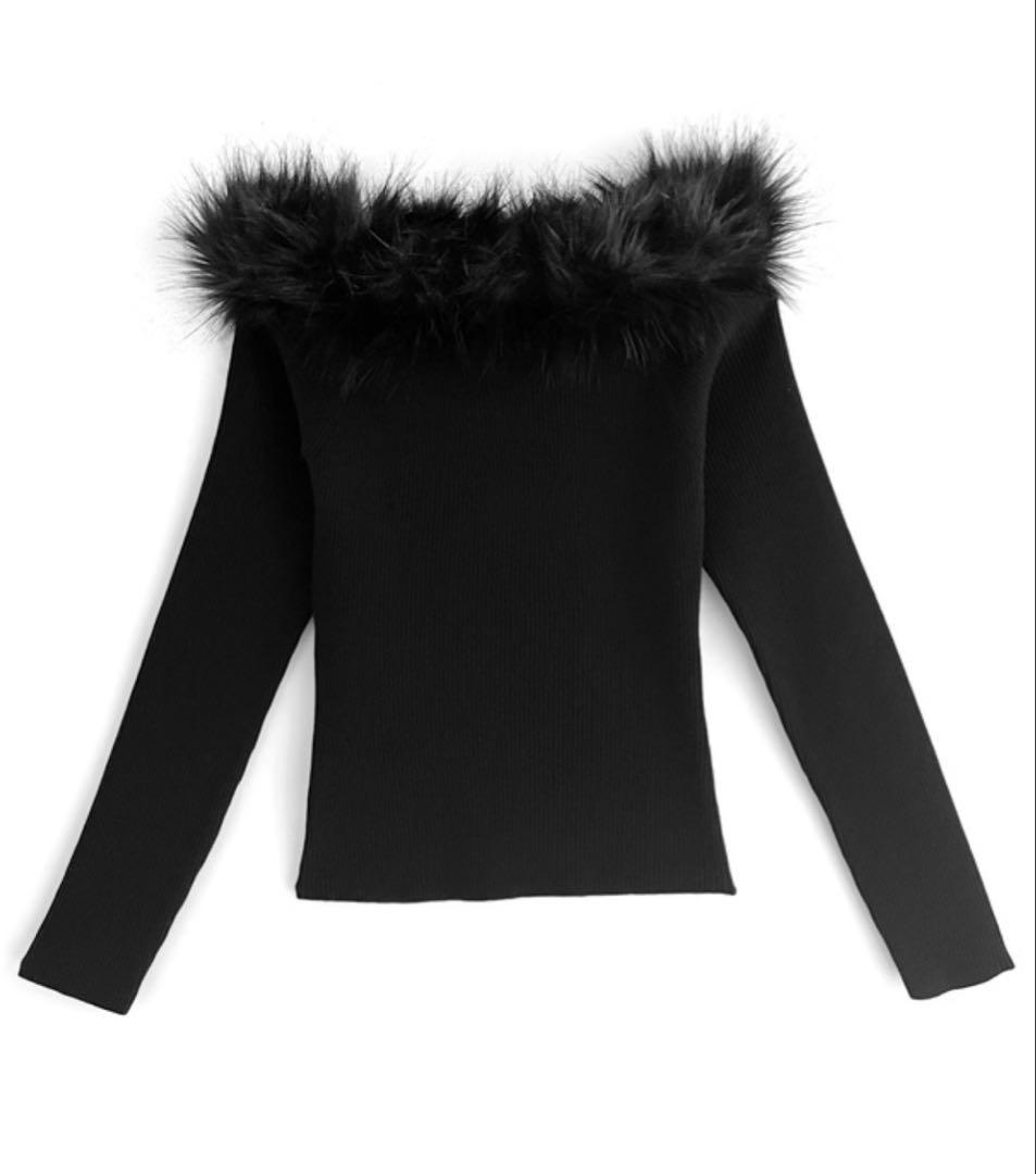 【お値下げ中】ファーオフショルダーニットトップス[an1271]