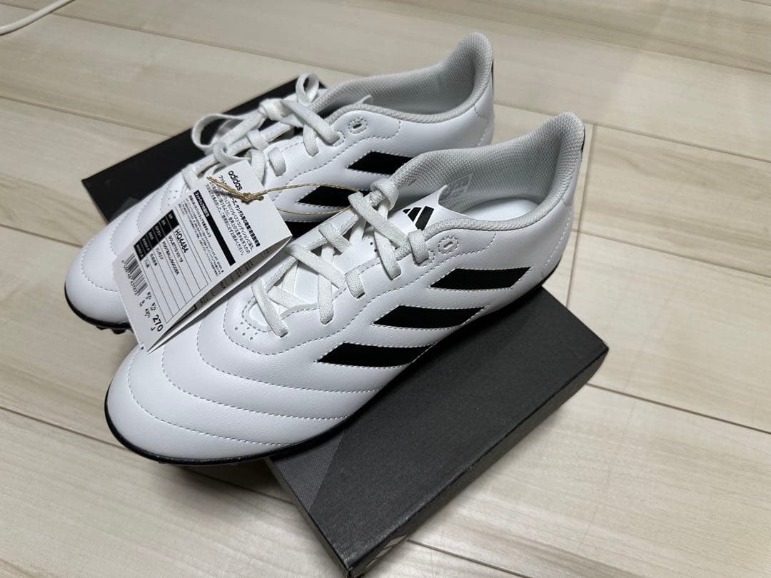 ホワイトとブラックの配色が特徴のadidasサッカーシューズ、270サイズ。 - ブランド: adidas - モデル番号: HQ4484 - サイズ: 270 - カラー: ホワイト/ブラック - スタイル: サッカーシューズ ご覧いただきありがとうございます。
