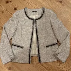 『ペルソディア』ノーカラージャケット グレー ソフト 薄手 七分袖