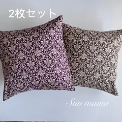 ブラウン リーフ柄 クッションカバー 刺繍 茶色 高価