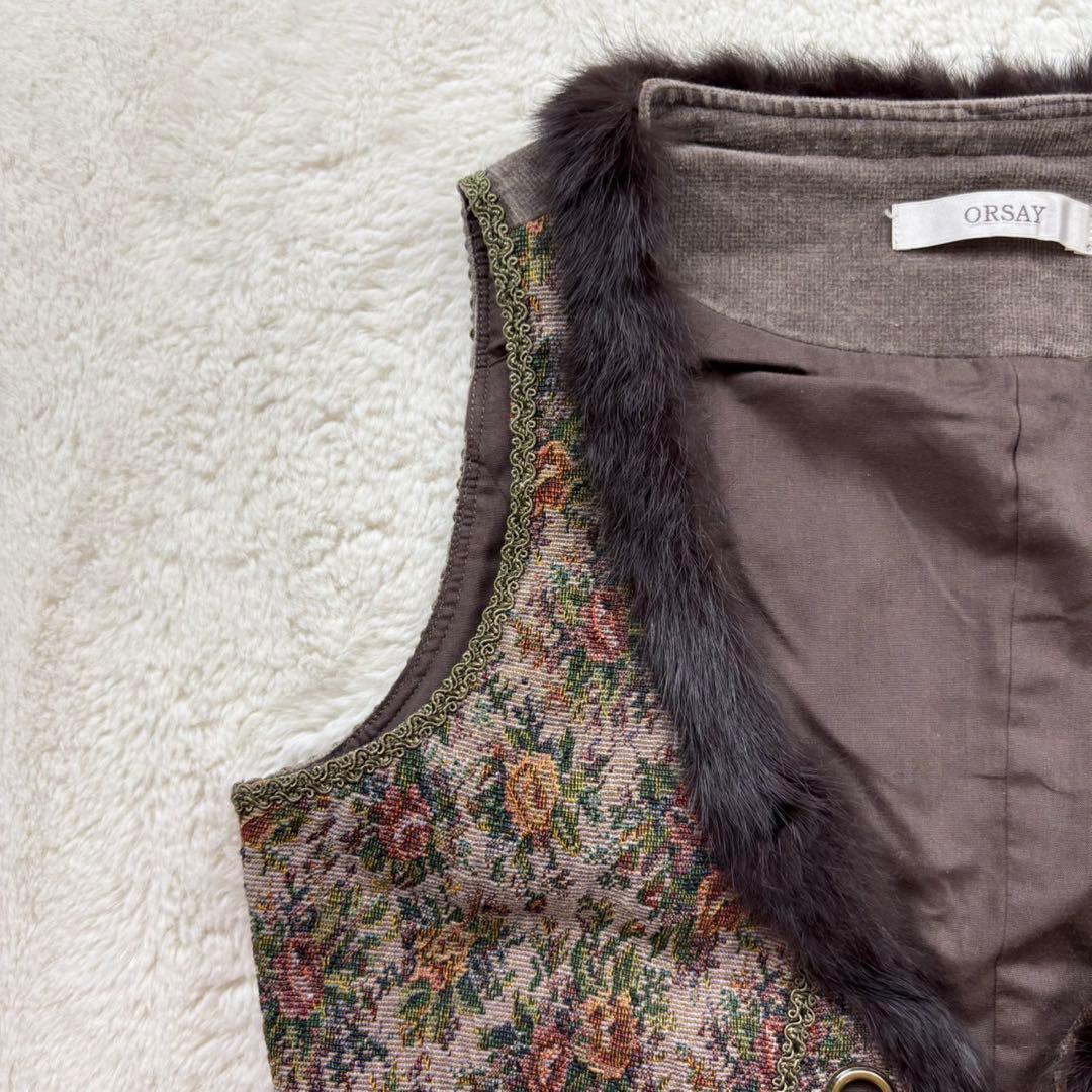 ☆【オルセー】38 グレージュ系 ベスト ファー付 秋冬 花柄