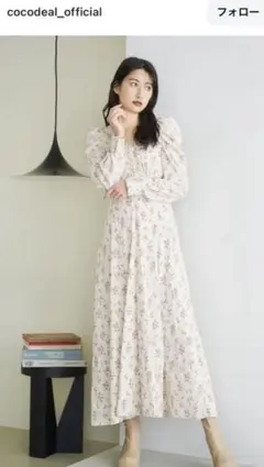 Z.Y.G.F【Free】花刺繍 ワンピース コットンリネン混 チャコールグレー