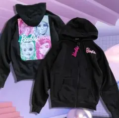バービー グラフィック ジップアップフーディ パーカー ブラック
