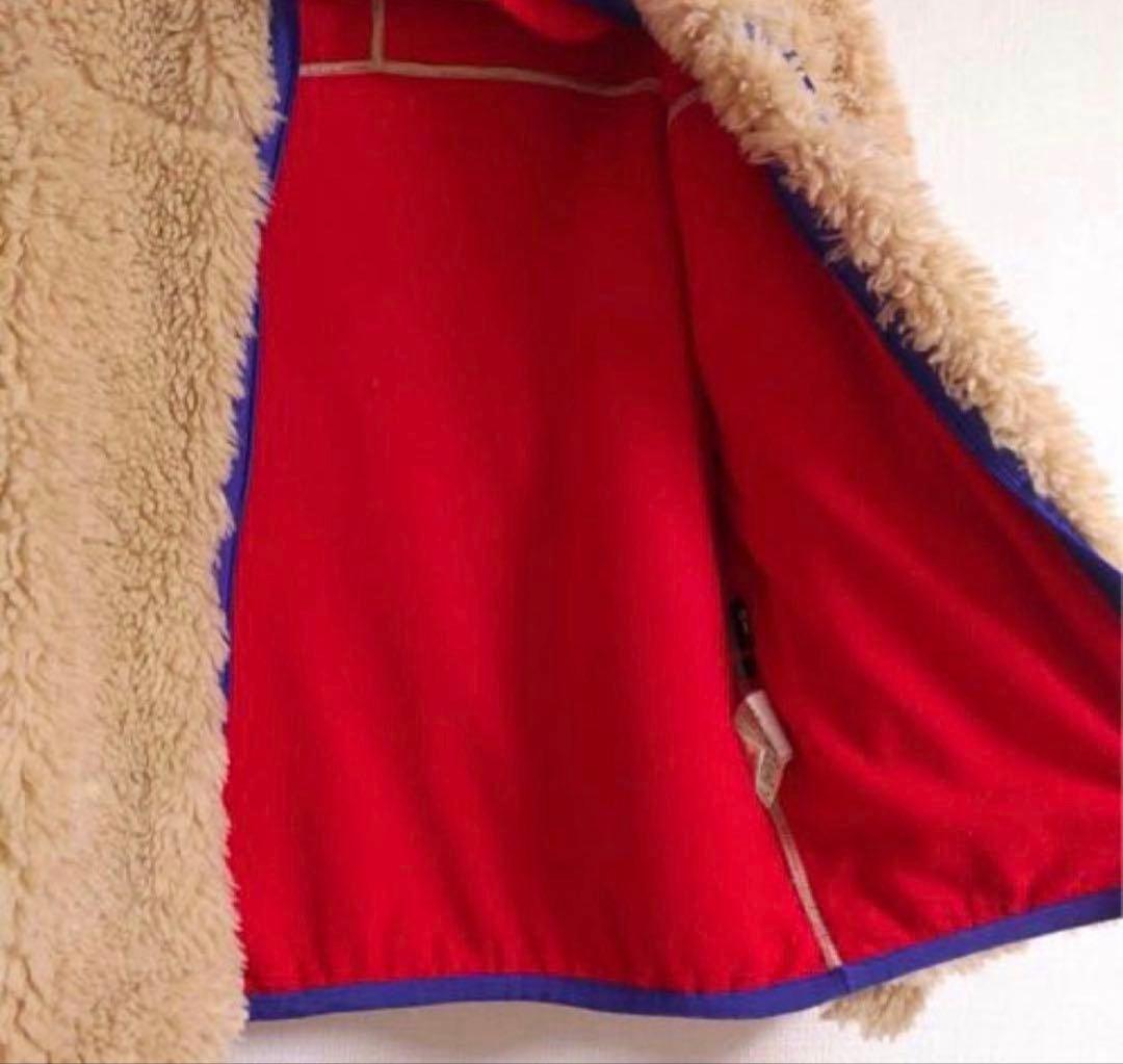 ベージュ/ブルー フリースジャケット
