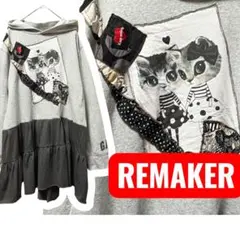 ML★ダメージ古着り名宇 フード付きパーカーチュニック グレー 猫 ヒップカバー