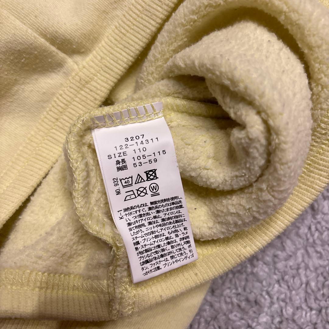 シューラルー 裏起毛 トレーナー うさぎ イエロー 黄色 110㎝