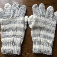 グレーとホワイトのニット手袋