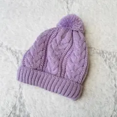 新品未使用 ニット ボンボン 帽子 パープル 新生児