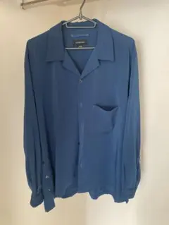 青い長袖シャツ 胸ポケット付き