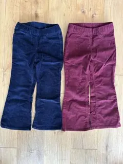 H&M コーデュロイフレアパンツ ネイビー バーガンディ 2点セット