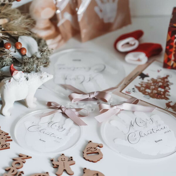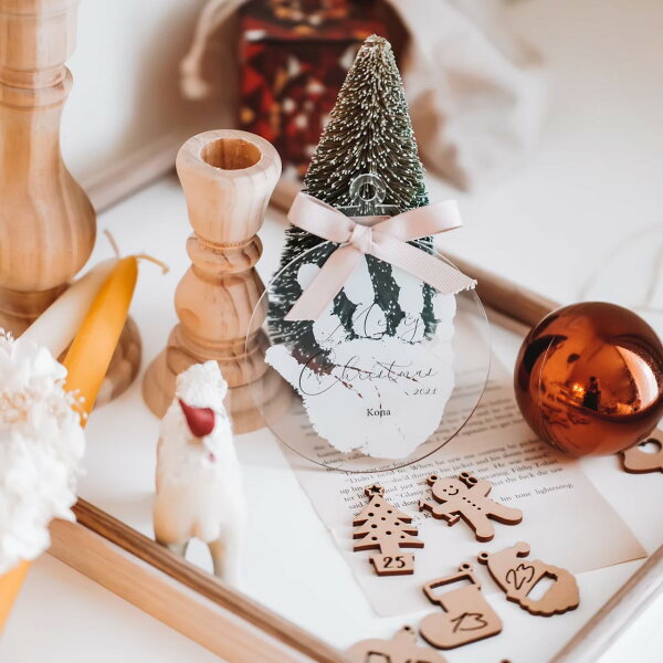 【発送前にサンプル作成で安心】〈お子様の手形で〉クリスマス クリア オーナメント 飾り アクリル 飾り 装飾 ナチュラル グッズ アイテム おうち 赤ちゃん フォトブース Merry Christmas 映え スタジオ ホームパーティ バースデー メモリアル 出産 内祝い 撮影 小物 ツリー