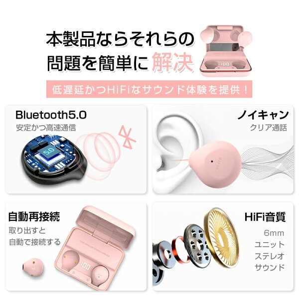 Bluetooth イヤホン 完全ワイヤレスイヤホン ブルートゥースイヤホン ワイヤレス イヤホン 自動再接続 Bluetooth5.0 ヘッドセット 蓋を開けたら自動電源オン 自動ペアリング Hi-Fiステレオサラウンド 高音質 長時間作動 大容量バッテリー 快適【PL保険加入済み製品・安心】