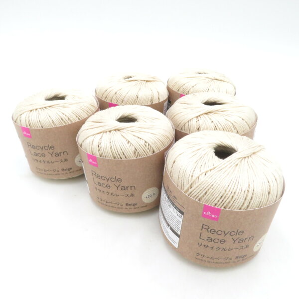 DAISO (ダイソー) 毛糸 6玉セット リサイクルレース糸 1玉20g 約80m 太 春夏糸 クリームベージュ リサイクルコットン50%使用【中古】
