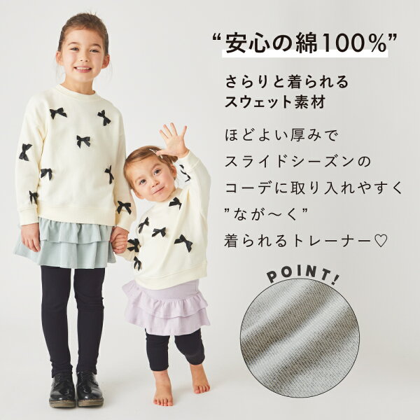 ガーリー モチーフ スウェット | キッズ ベビー 子供 子供服 キッズ服 女の子 ガールズ 秋冬 秋服 秋物 長袖 トップス スエット トレーナー キッズトレーナー 保育園 綿 コットン 裏毛 バレエコア 柄 リボン ハート 25AW 233175010
