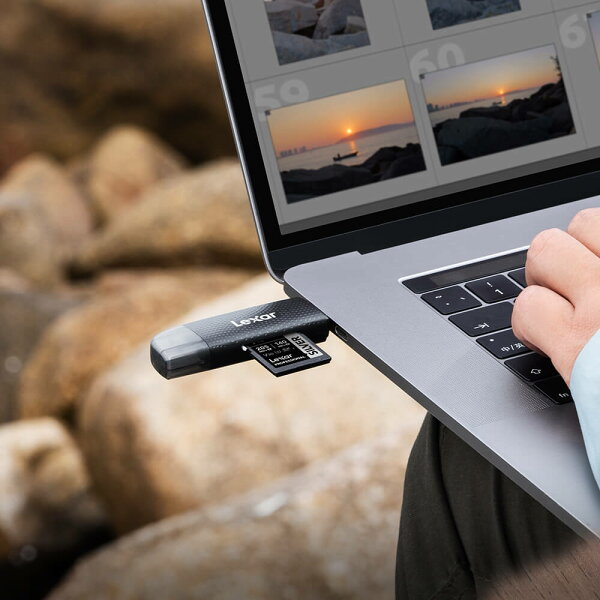 Lexar デュアルスロット USB-A/C リーダーは、PCとUSB Type-Cデバイス間でのファイル転送を簡単かつ迅速に実現します。SDカードおよびmicroSDカードスロットを搭載し、最大205MB/sの転送速度に対応。外出先でも写真や動画へスムーズにアクセスでき、作業効率を向上させます。