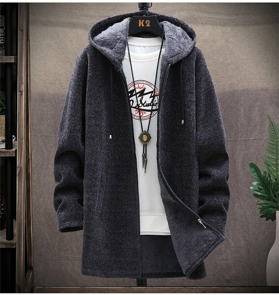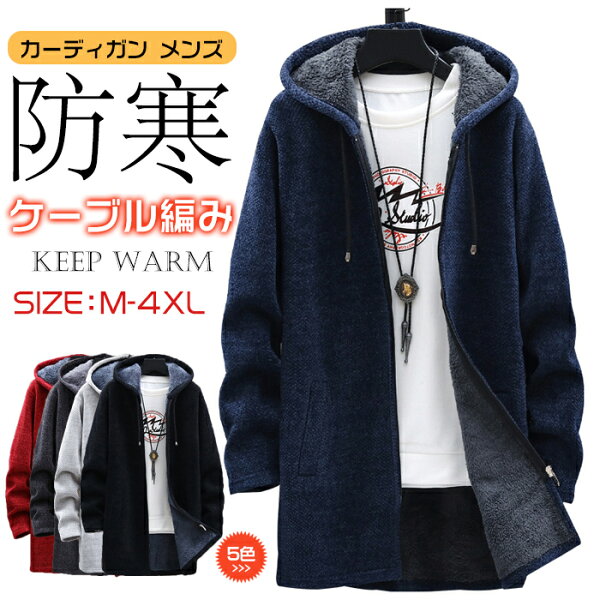 カーディガン メンズ ロング ニットコート ボア ジャケット ニットカーディガン ロングカーディガン 通勤 厚地 裏起毛 ケーブル編み 無地 カジュアル 防寒 秋冬 フード付き