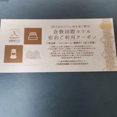 倉敷国際ホテル ペア宿泊券 1泊2名様 朝食付き